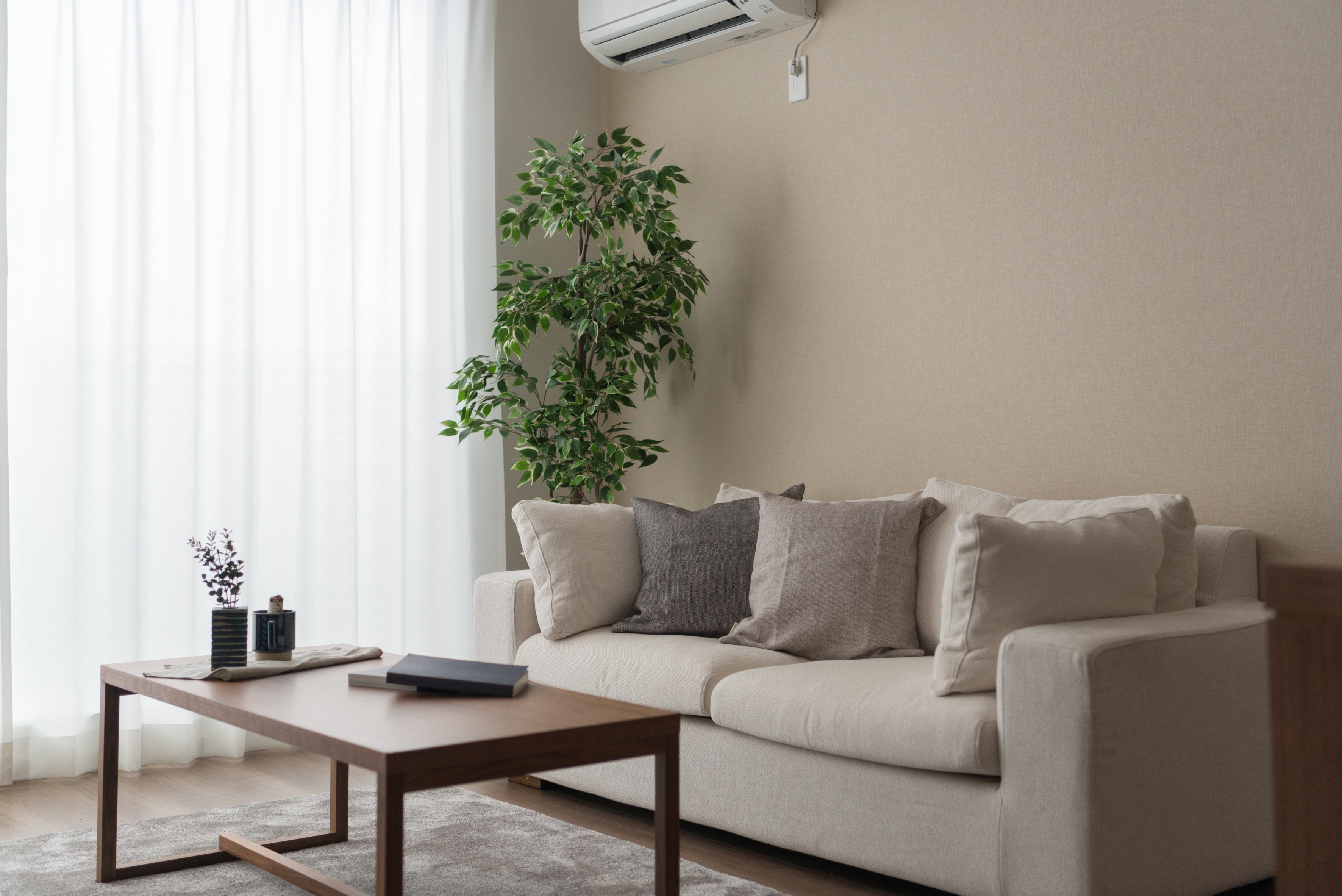 窓から射し込む光がやさしくめぐり、グリーンが風にゆれるインテリアはナチュラルテイストならでは。